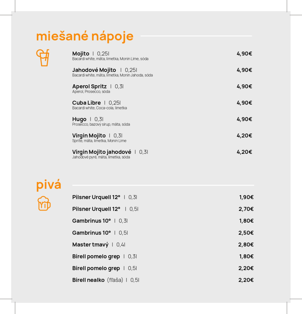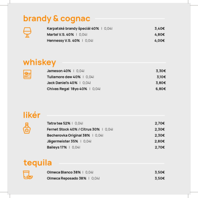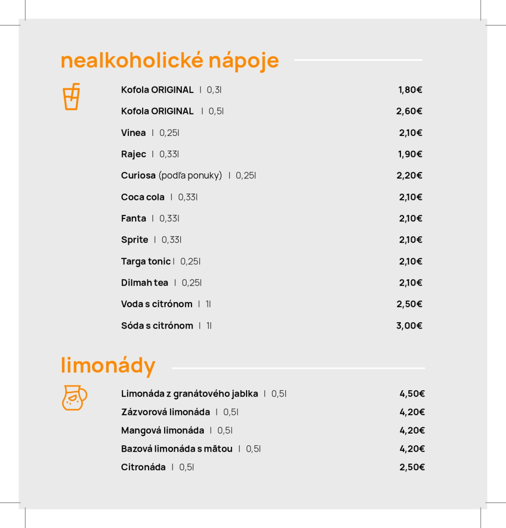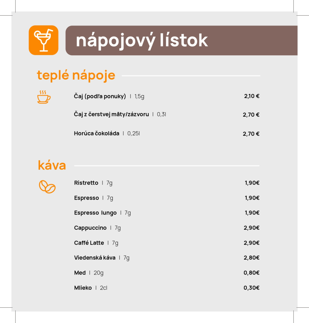 Jedálny a nápojový lístok