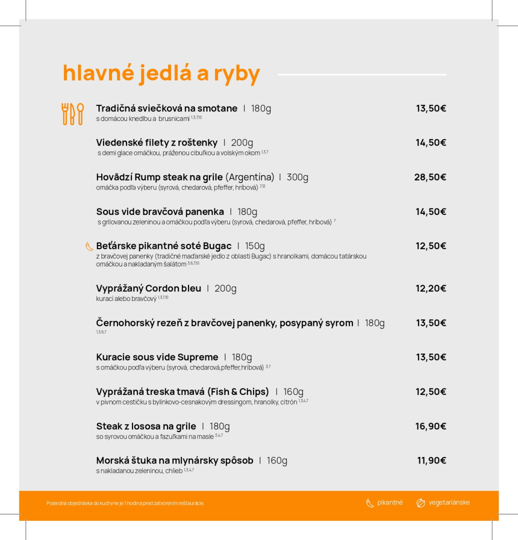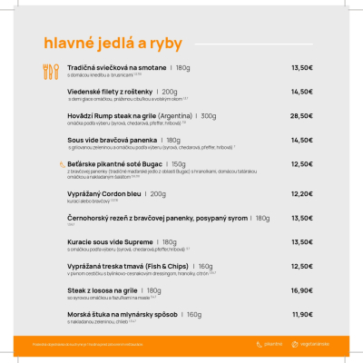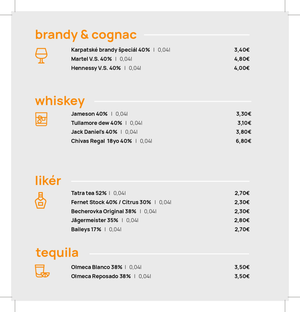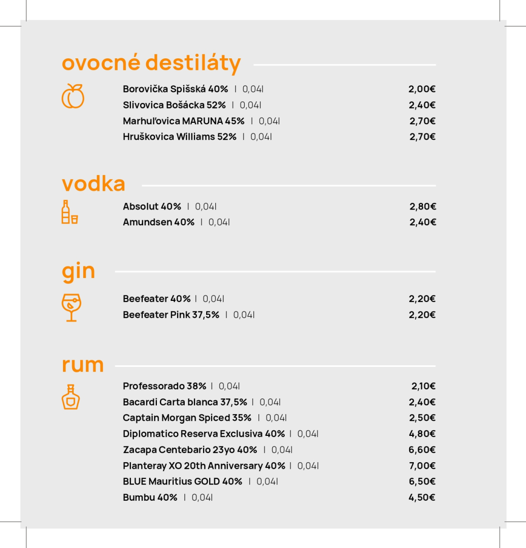 Jedálny a nápojový lístok