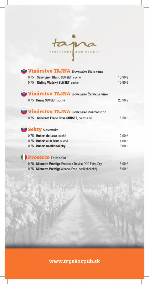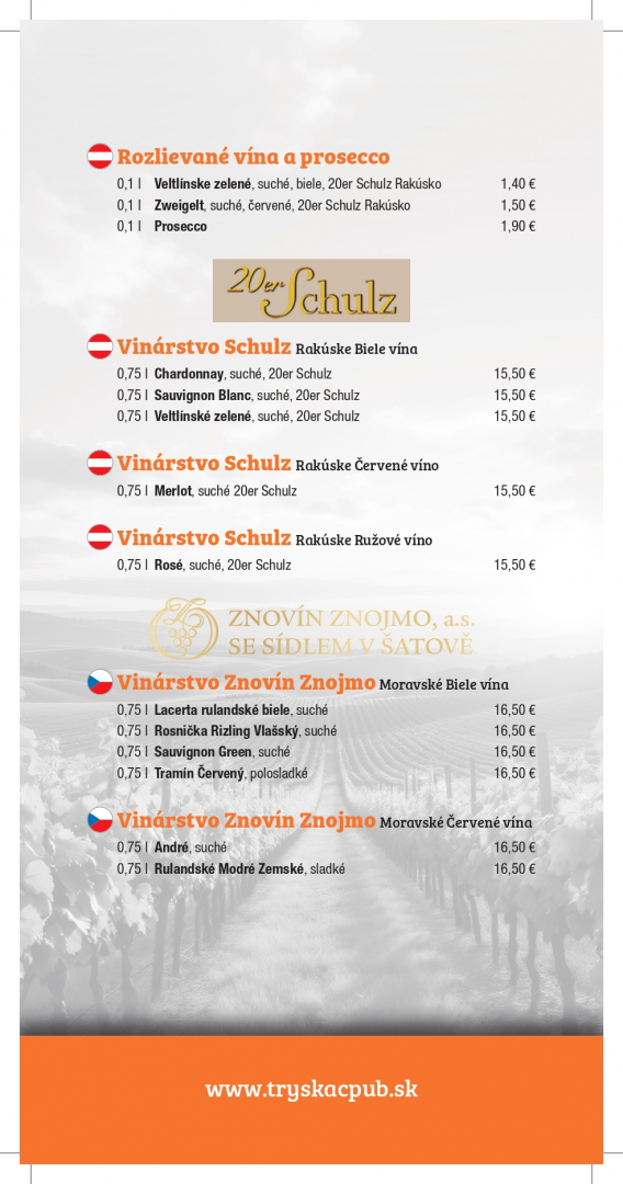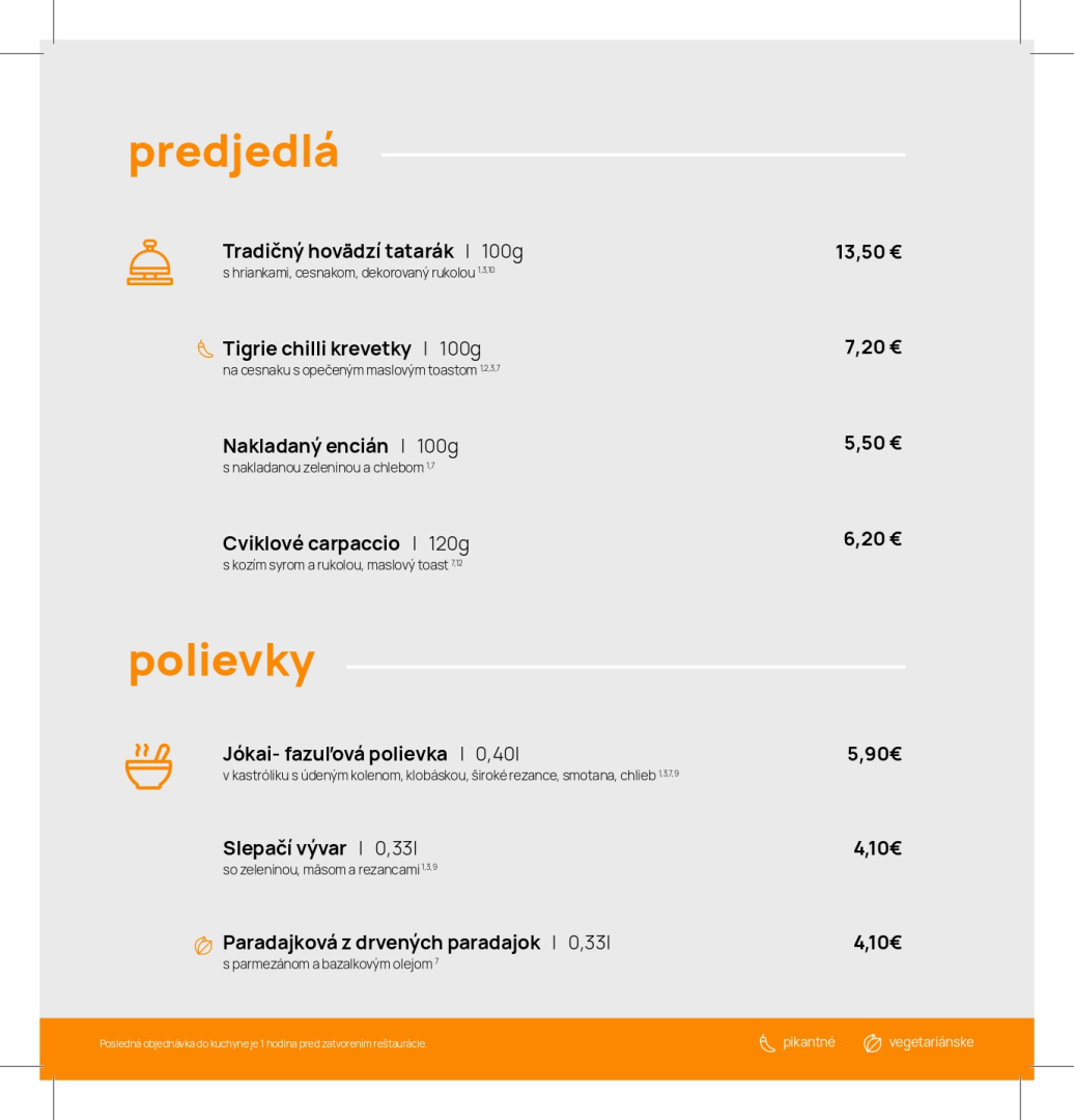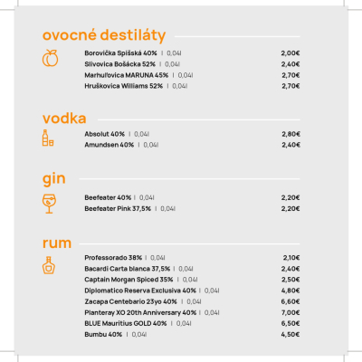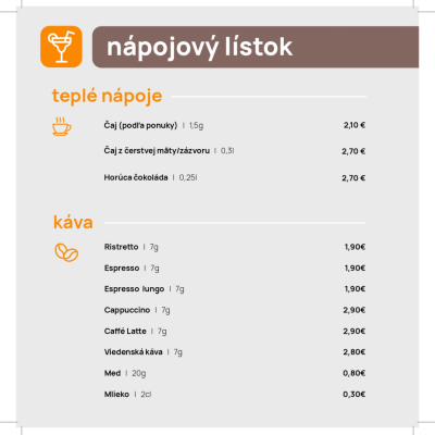 Jedálny a nápojový lístok